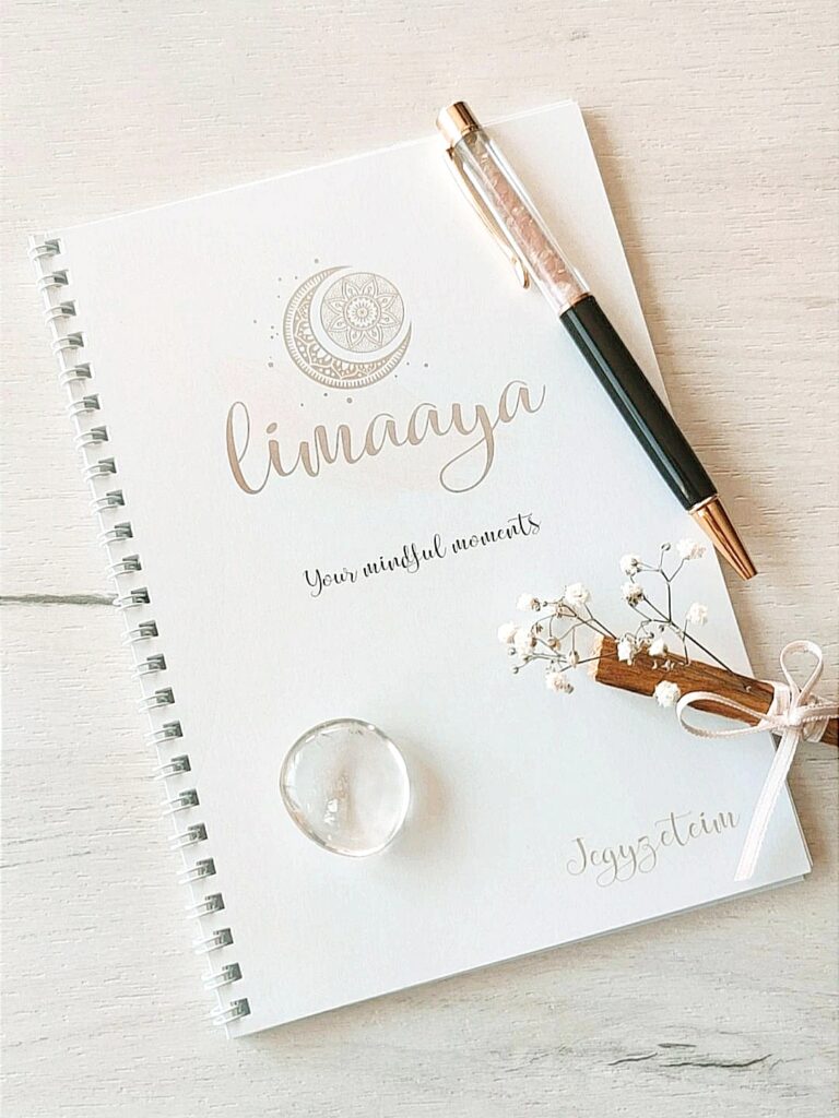 – Jegyzetfüzet: naplózáshoz (hálanapló, hálalevél, manifesztációs napló), jegyzeteléshez, céljaid leírásához, a módszerek gyakorlásához